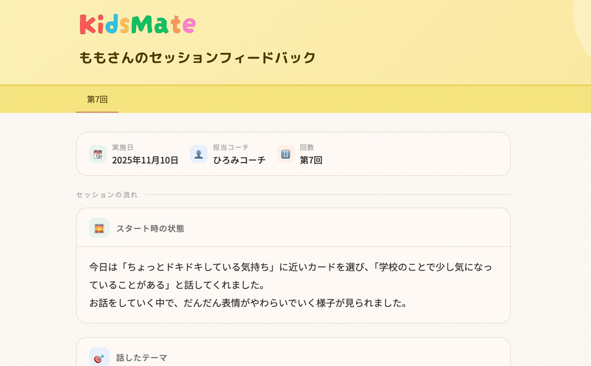 子どもとコーチが1対1で対話するオンラインセッションです。